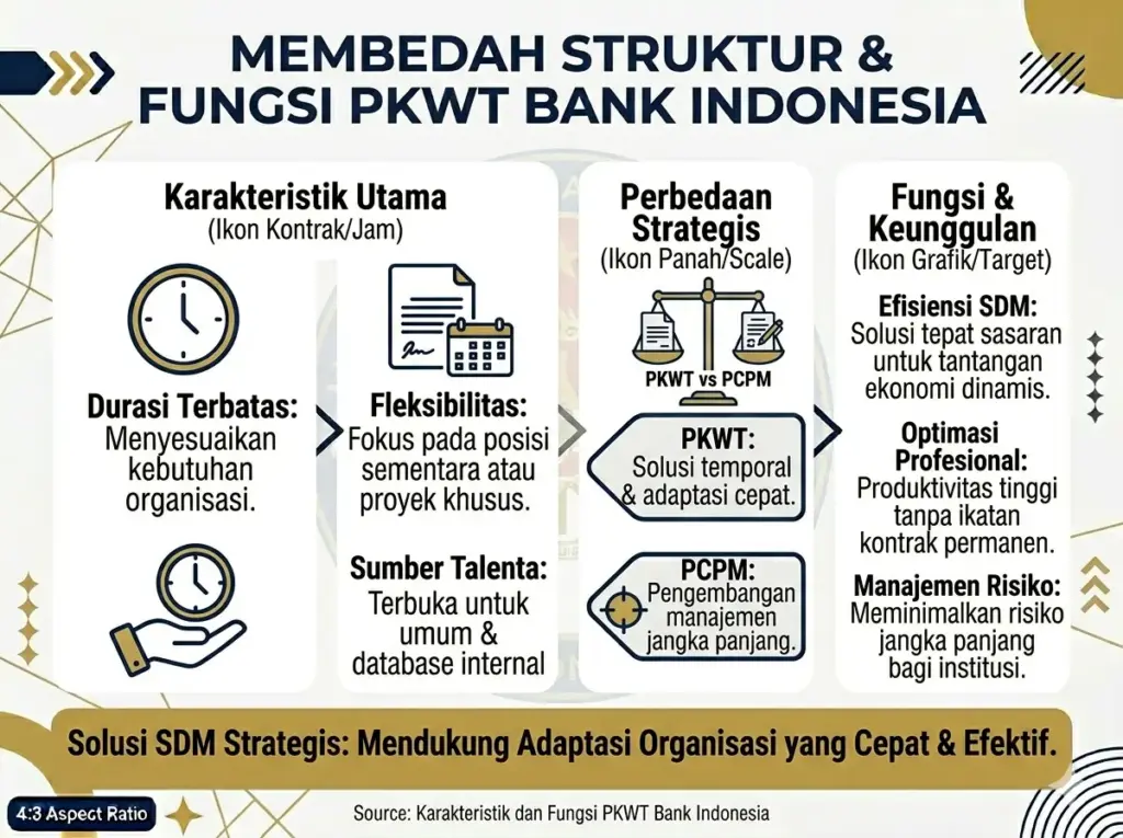 Fungsi utama PKWT adalah sebagai solusi sumber daya manusia yang efisien dan efektif menghadapi tantangan dinamis industri keuangan. Bank Indonesia bisa mengoptimalkan talenta profesional secara tepat sasaran untuk periode waktu yang spesifik tanpa terikat pada kontrak permanen, sehingga meminimalkan risiko dan meningkatkan produktivitas.