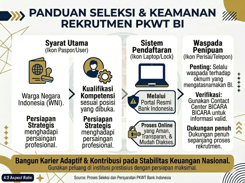 Bank Indonesia juga mengingatkan pelamar untuk waspada terhadap penipuan yang mengatasnamakan institusi. Informasi resmi bisa diperoleh melalui Contact Center BICARA yang siap melayani selama jam kerja, memberikan dukungan penuh sepanjang proses rekrutmen.