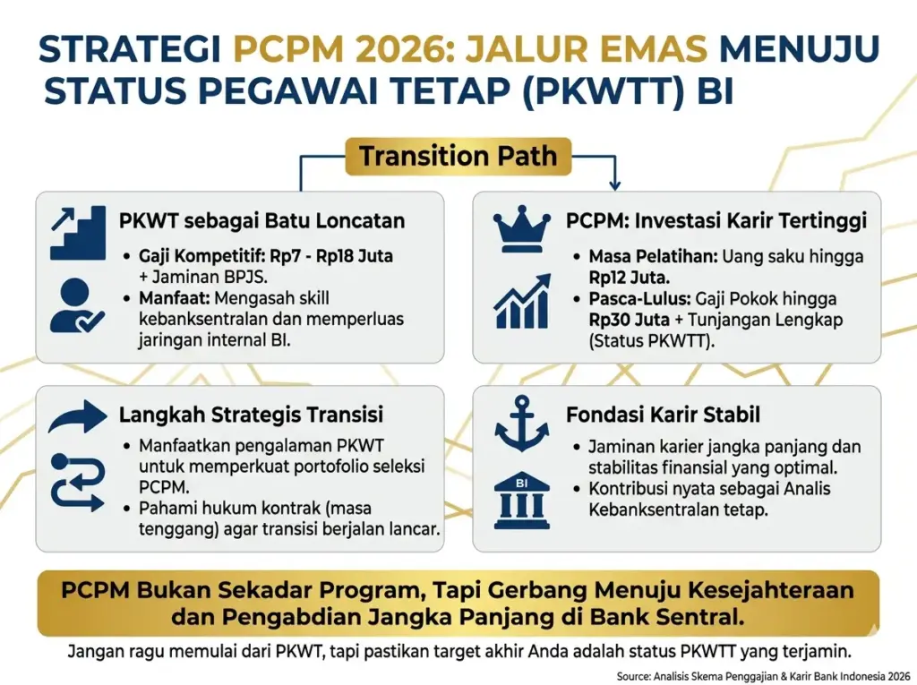 Program ini memberikan jaminan karier dan stabilitas yang lebih baik daripada status PKWT, menjadikannya pilihan strategis bagi calon analis kebanksentralan yang ingin berkarier sebagai pegawai tetap BI.